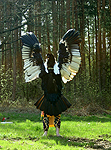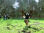 Seit dem Jahr 2000 ist dies der erste Kondortanz, der in Deutschland öffentlich stattgefunden hat. Vor dem Tanz hatte ich Sorgen, weil es stark windig war. Glücklicherweise schirmten die Bäume das Gebiet etwas ab und der Tanz war durchführbar. Für mich war es das erstemal, bei windigem Wetter zu tanzen - eine ganz besondere und tiefgehende Erfahrung, die "Ekstase des Fluges" auf diese Weise spüren zu dürfen. In den Momenten, als der Wind die Schwingen anhob, durfte ich diese Ekstase auch selbst erleben. Leider gab es einige Pannen bei den Dreharbeiten, so daß der Tanz nicht komplett aufgezeichnet wurde. Der Film ist das Beste, was aus dem Material zu machen war. Ich danke "Kayja", Burkhard, "Phoenix", Araalia und Olli für ihre Aufnahmen. Das Video wurde im Studio von Dipl.-Ing. Rolf-Dieter Klein geschnitten.