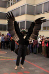 Während des Kongresses "Ein Erbe des Menschheit - Das Wissen der Völker" in der Hauptschule der UNESCO in Bürs war der Kondortanz am Samstag Abend ein Höhepunkt und der Abschluß des ersten Kongresstages. Diesesmal tanzte Kondor für die anwesenden Zuschauer, die zu einem großen Teil vorher noch nie in Kontakt mit der schamanischen Spiritualität gekommen sind. Der Tanz wurde von sehr guten Trommlern begleitet, die es verstanden die Dynamik des Tanzes mitzugestalten. Dieser Tanz war der erste, den ich am Tage durchführte. Ich danke Gudrun Kaiserswerth und Murat Karacay für die Aufnahmen.