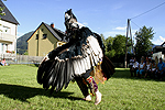 Wieder einmal war mein Kondortanz ein Programmpunkt im Kongreß "Aspekte des Heilens". Die beiden Tänze im August 2011 haben einen Zusammenhang: Der Tanz am 14. fand zu Vollmond statt, und der am 28. zu Neumond. In diesem Tanz wie auch dem Folgetanz zwei Wochen später entdeckte ich, daß Kondor sehr gerne direkt in die Sonne starrt. Inzwischen ist das für mich ein Nachweis der Besessenheitstrance, denn ohne Sonnenbrille direkt in die Sonne zu schauen ist sehr schnell schmerzhaft und sehr blendend. Beim Tanz jedoch keines von beidem. Ich danke "skj" für die Kameraführung, "Durian" und Herbert Käfer für die Photographien.