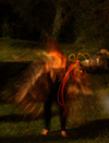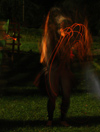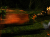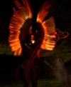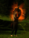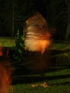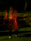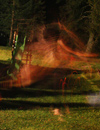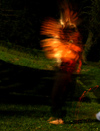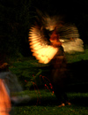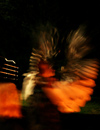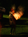 Den ersten Tanz nach der siebenjährigen Tanzpause führte ich in der Nacht durch. Eigentlich ist die Nacht die bevorzugte Zeit für alle Kondortänze. Der Andenkondor ist zwar ein Aasfresser und am Tage aktiv, jedoch ist die spirituelle Dimension des Kondors als Geier eine stark weiblich und der Erde entsprechend. Die Dunkelheit der Nacht ist der schwarzen Kondorkraft analog, daher ist es naheliegend, die Tänze nach Sonnenuntergang auszuführen. So jedenfalls war mein Ausgangspunkt bei diesem Tanz - bei den nicht dokumentierten Tänzen Ende der 90er Jahre tanzte ich ausschließich in der Nacht. Durch die eher bescheidenen Lichtverhältnisse entstanden einige hochdynamische Photographien, für deren Entstehung ich Murat Karacay ganz herzlich meinen Dank an dieser Stelle aussprechen möchte.
